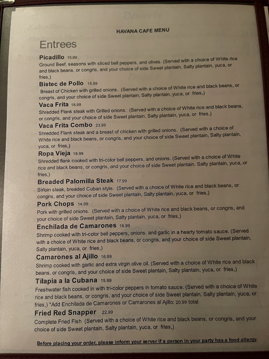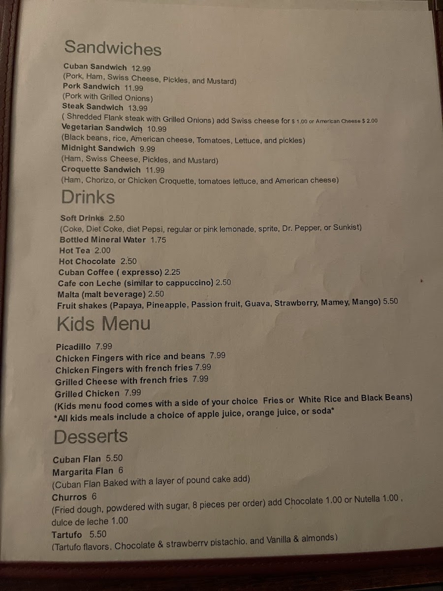 Top sirloin steak breaded Cuban style served with white rice, black beans and your choice of sweet plantains, salty plantains or yuca.