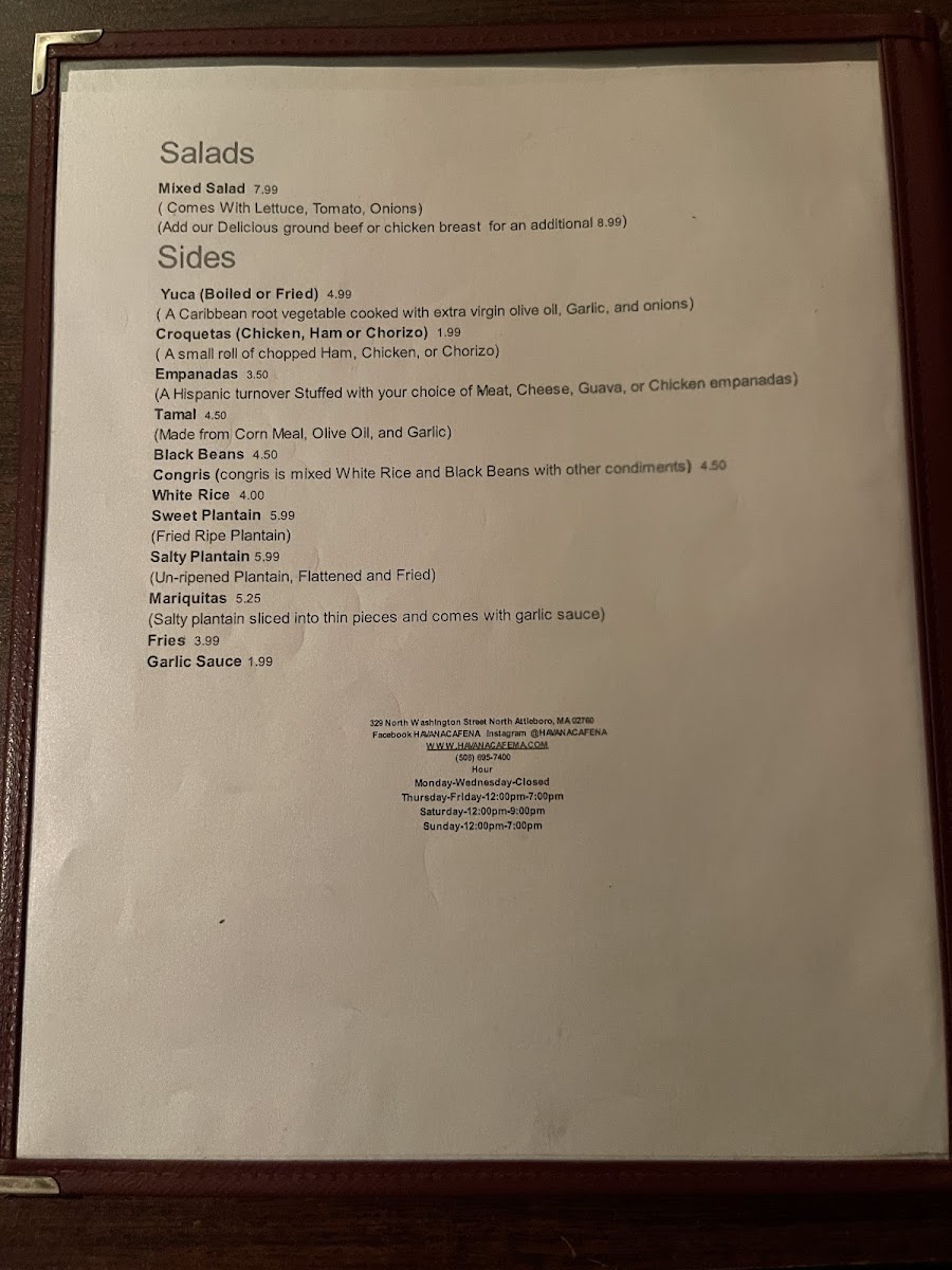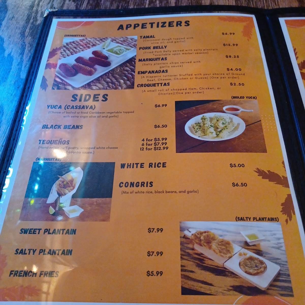 Pork with grilled onions served with white rice, black beans and your choice of sweet plantains, salty plantains or yuca.